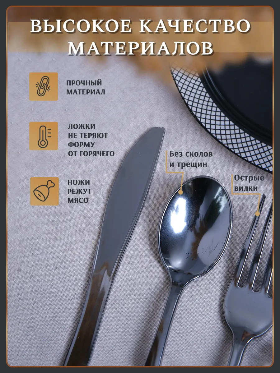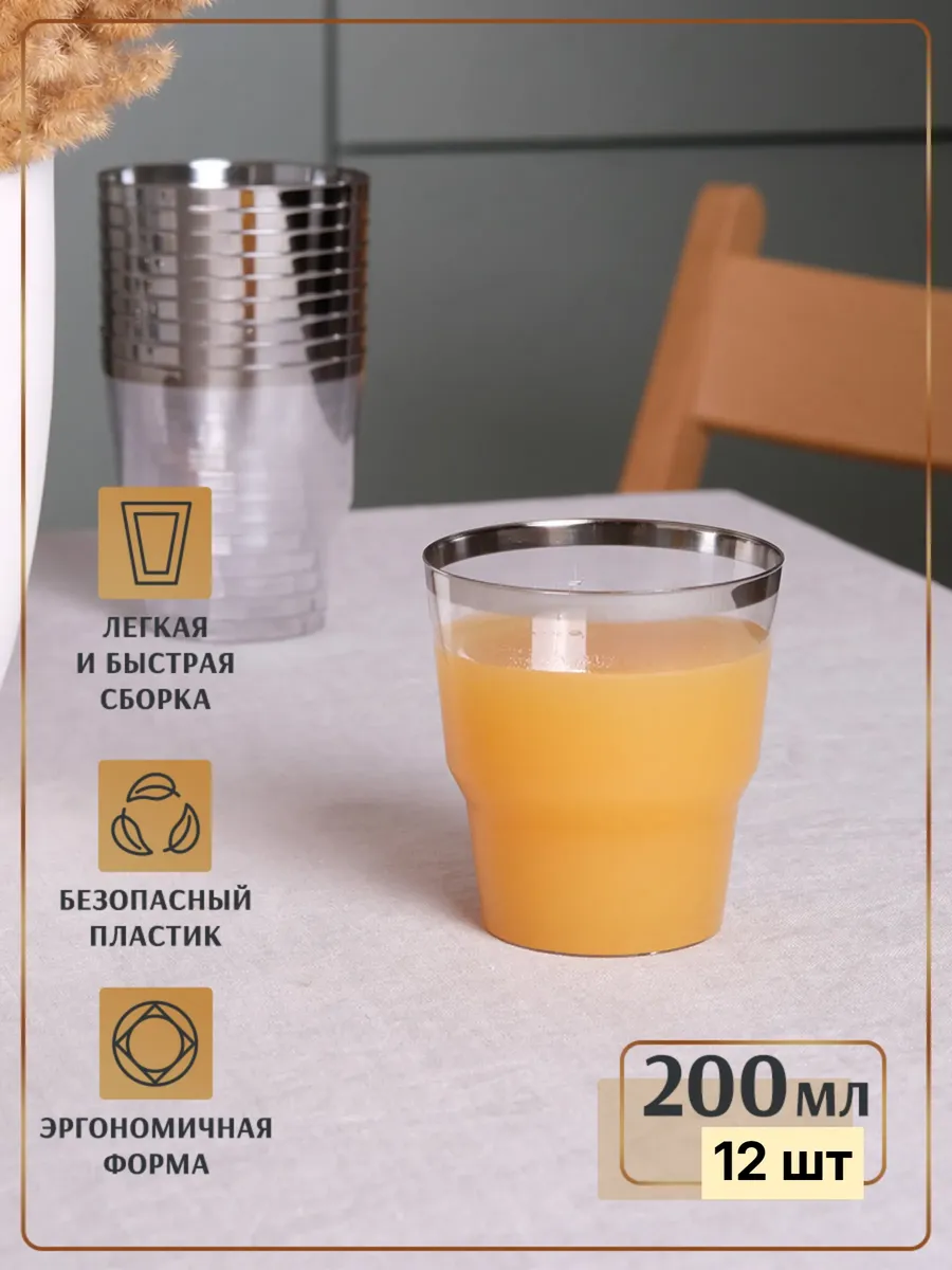 Все изделия из набора пластмассовой одноразовой посуды для праздника выполнены из прочного и безопасного пластика полистирола. Пластмассовые приборы в цвете серебро (одноразовые вилки, ложки и одноразовые ножи) не имеют трещин и сколов, не наносят царапины. Пластмассовые одноразовые стаканы (пластмассовые одноразовые бокалы, рюмки и фужеры) прочные, не бьются и не мнутся. Пластмассовые тарелки плотные, очень стильные, подходят для декора стола на любом празднике. Праздничные наборы одноразовой посуды стильные и красивые, они превосходно подходят для сервировки столов не только в кафе и ресторанах, на фуд-кортах и кейтерингах, а так же подойдут для сервировки корпоративных мероприятий, фуршетов, банкетов, деловых обедов в офисах, в школьных детских столовых, на предприятиях и праздничных мероприятий на природе. Не нужно тратить время на мытье посуды.