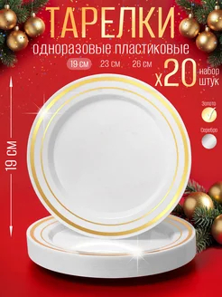 Набор тарелок 20 шт — это готовое решение для сервировки стола без лишних хлопот. Пластиковые тарелки 19 см выполнены из прочного полистирола, поэтому не гнутся и сохраняют форму под весом закусок. Изящная золотая кайма придаёт посуде праздничный вид, который подходит для дня рождения, свадьбы, корпоратива или фуршета.