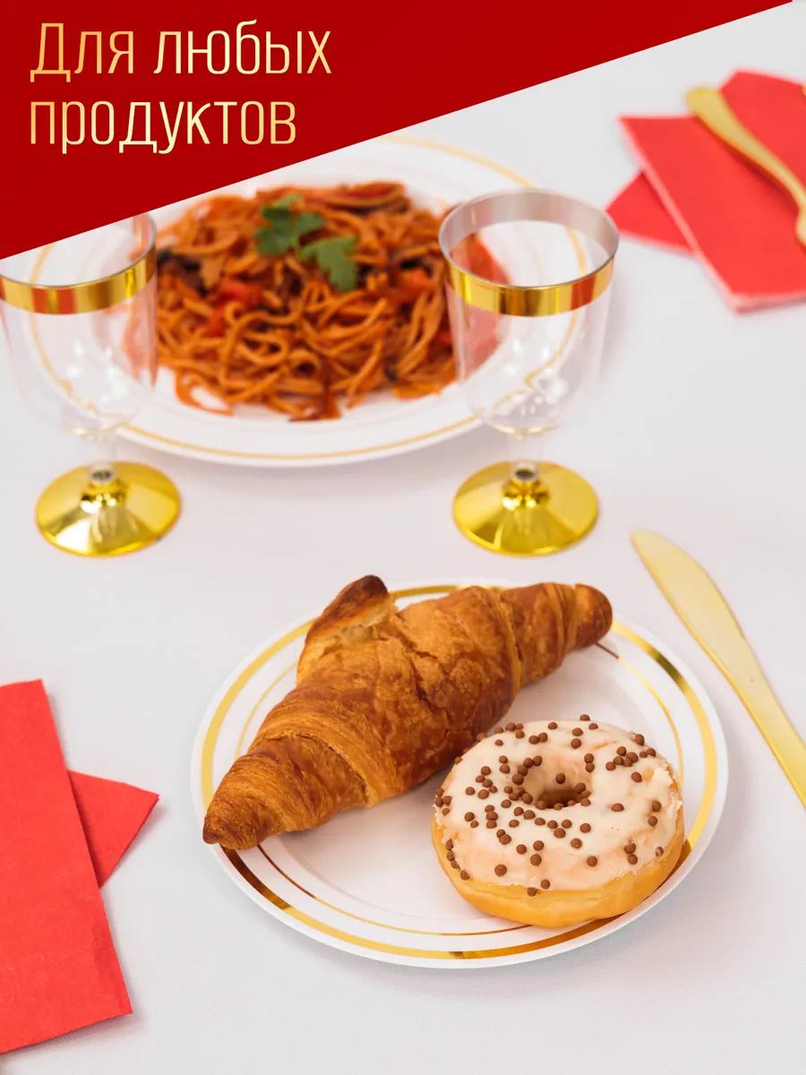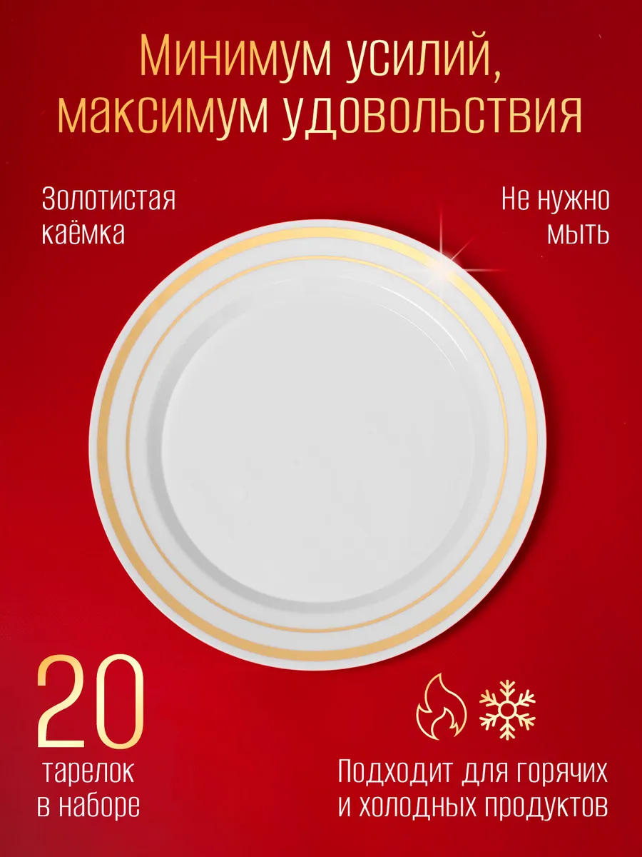 Представляем вашему вниманию набор одноразовых тарелок, который станет незаменимым элементом для любого праздника или пикника. Этот комплект из 20 пластиковых тарелок диаметром 19 см идеально подходит для сервировки стола на различных мероприятиях, будь то свадьба, день рождения или корпоратив. Тарелки украшены изящной золотистой каемкой, что придаёт сервировке особую элегантность и стиль. Изготовленные из прочного пищевого пластика, эти тарелки выдерживают температуру до +75°C, что позволяет использовать их для подачи как горячих, так и холодных блюд. Они сохраняют свою форму на протяжении всего мероприятия, обеспечивая надежность и удобство. Одноразовая посуда избавляет от необходимости мытья после застолья, что особенно актуально для больших компаний и массовых мероприятий. Этот набор одноразовых тарелок станет отличным дополнением к вашей коллекции посуды для праздника. Вы можете легко сочетать его с другими элементами, такими как одноразовые ложки и вилки, которые также доступны в нашем ассортименте. Тарелки подойдут для использования как дома, так и на природе, делая любое мероприятие более организованным и стильным. Благодаря своему универсальному дизайну, тарелки легко впишутся в любой интерьер, добавляя нотку изысканности. Они станут прекрасным подарком для тех, кто ценит комфорт и практичность. Не упустите возможность сделать ваш праздник незабываемым с помощью этого набора одноразовой посуды. Он станет незаменимым помощником в организации любого торжества, будь то детский праздник или корпоративное мероприятие. Подарите себе и своим гостям комфорт и красоту с этими стильными тарелками, которые подчеркнут атмосферу вашего праздника и сделают его более запоминающимся.