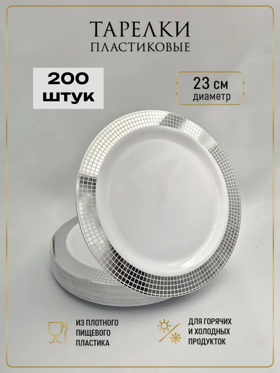 Одноразовые пластиковые тарелки 23 см. Набор 200 штук