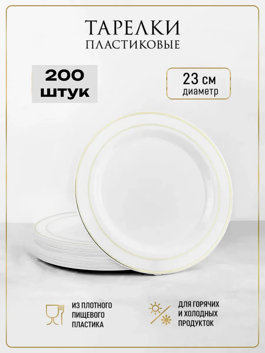 Эти одноразовые пластиковые тарелки диаметром 23 см — идеальное решение для вашего праздника. В наборе 200 штук, что позволяет легко организовать сервировку для большой компании на корпоративе или банкете. Изготовленные из прочного и безопасного пластика, они выдерживают температуру до +75°C, что делает их идеальными для подачи как горячих, так и холодных блюд.